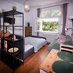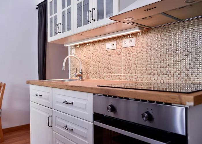La cocina bien equipada de la villa Central Urban Studio - Style Meets Comfort está equipada con tetera, nevera y cristalería. Este lugar está a unos cuantos pasos del restaurante Kolkovna, donde los huéspedes pueden disfrutar de diversas comidas. La estación de autobuses Nove SND está a 150 metros de esta villa, lo que permite a los huéspedes descubrir fácilmente Bratislava.